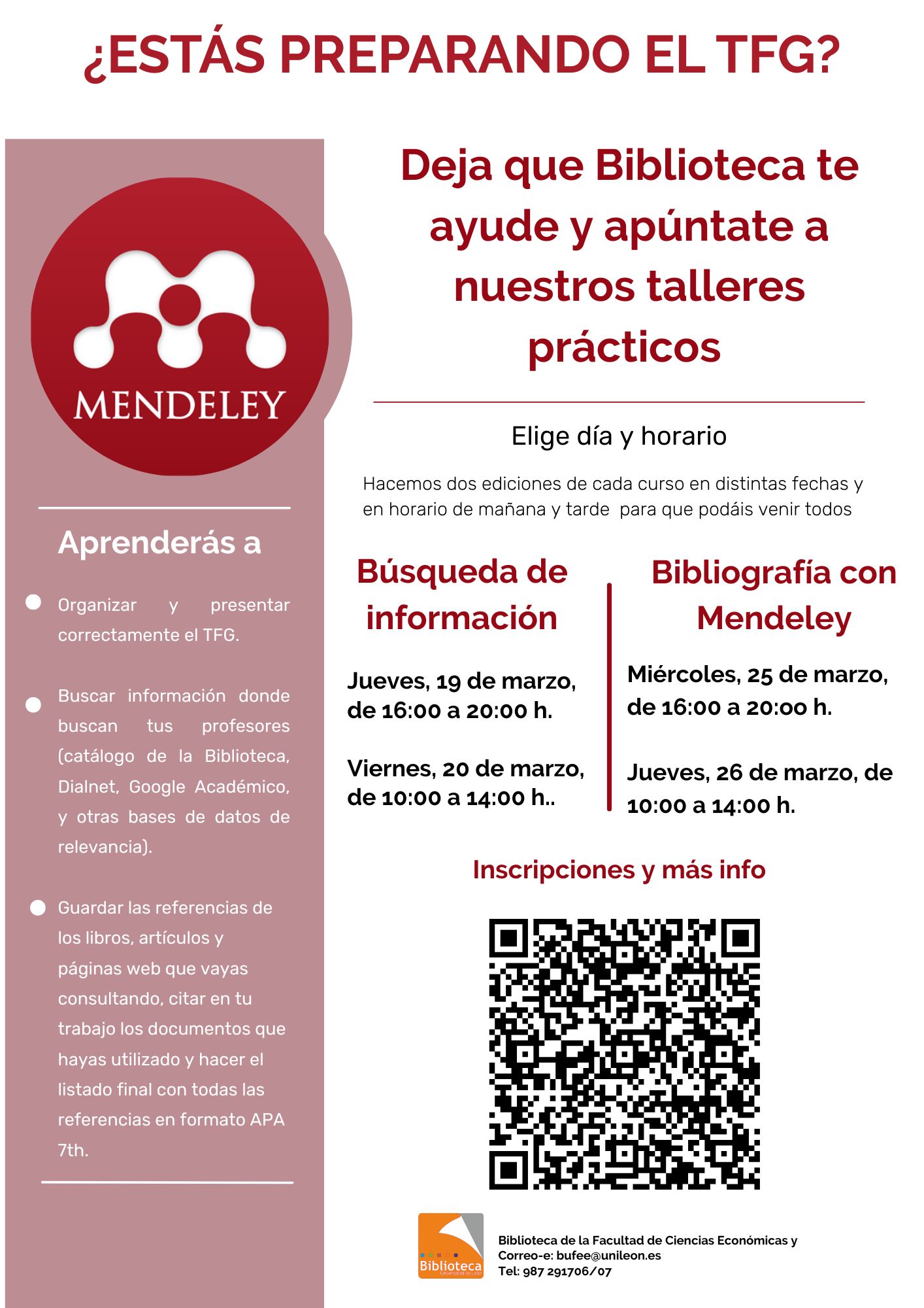 Aprende a encontrar información fiable, gestionar tus referencias y mejorar la calidad de tu trabajo. Haz que tu TFG destaque y apúntate a los cursos organizados por la Biblioteca.