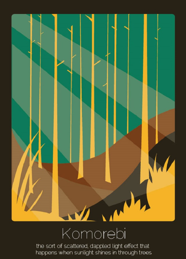 - Komorebi (japonés): el efecto disperso y pinto de la luz que sucede cuando los rayos del sol brillan a través de los árboles.