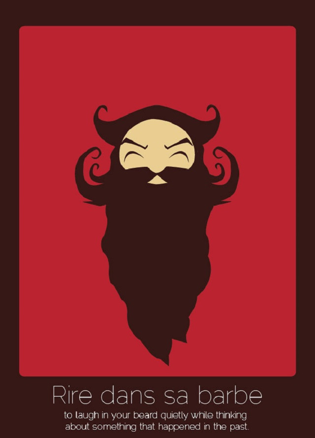 - Rire dans sa barbe (francés): divertise tranquilamente con la barba mientras se piensa en algo que ocurrió en el pasado.