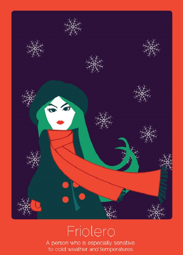 - Friolero (español): una persona especialmente sensible al frío y a las bajas temperaturas.