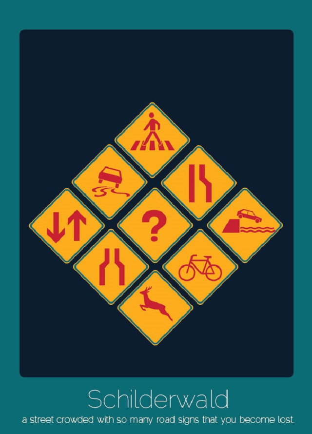 - Schilderwald (alemán): una calle llena de personas con tantos letreros que es fácil perderse.