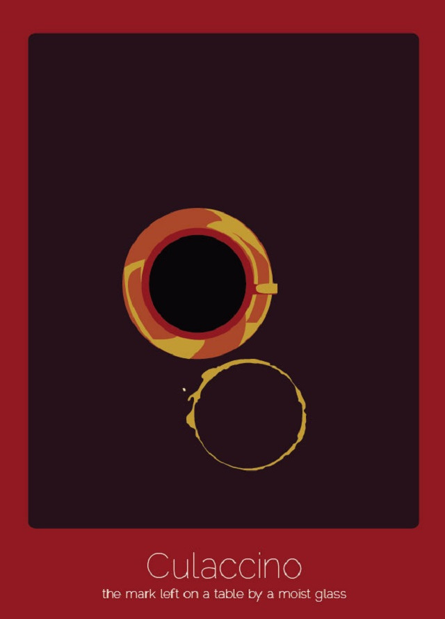 - Culaccino (italiano): la marca dejada en la mesa por un vaso húmedo.