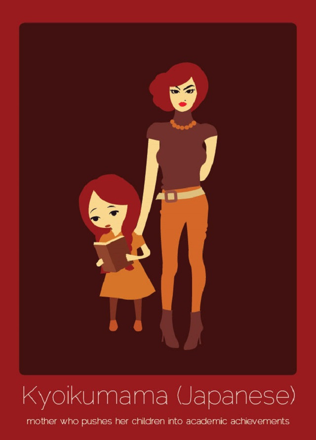 - Kyoikumama (japonés): una madre que presiona a sus hijos para que obtengan logros académicos.