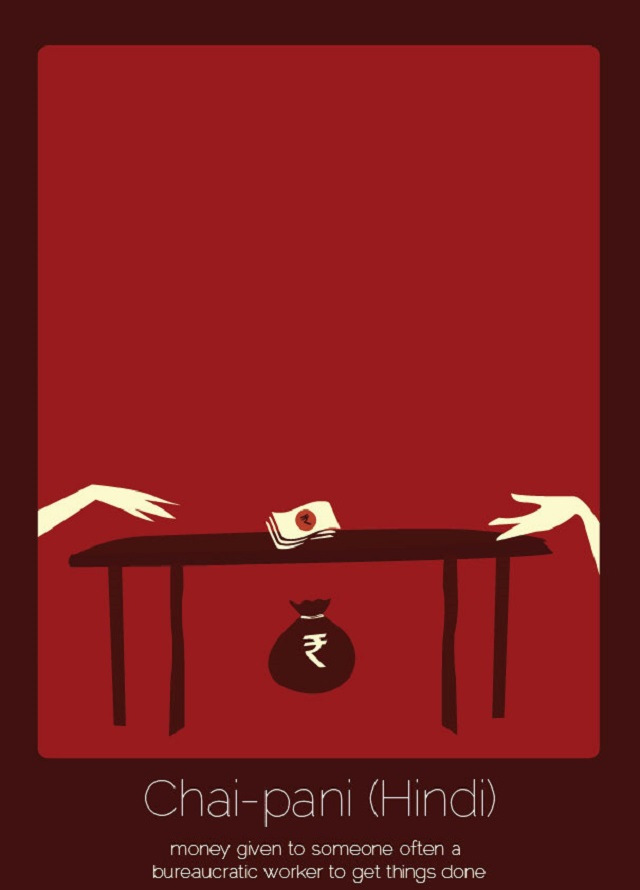 - Chai-pani (hindi): dar dinero a alguien, frecuentemente a un burócrata, para que las cosas se hagan.